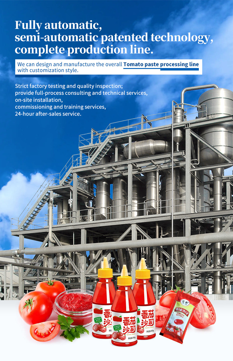 SSS Food Technology ontwerpt en produceert de tomatenproductielijn, die geschikt is voor de verwerking van tomatenpuree, pasta, jam, sap, saus, ketchup..